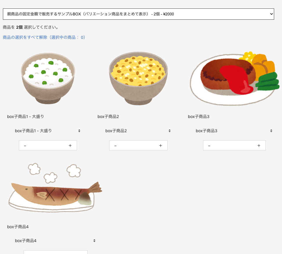 BOX機能:子商品の合計金額で販売する(バリエーション商品をまとめて表示する)