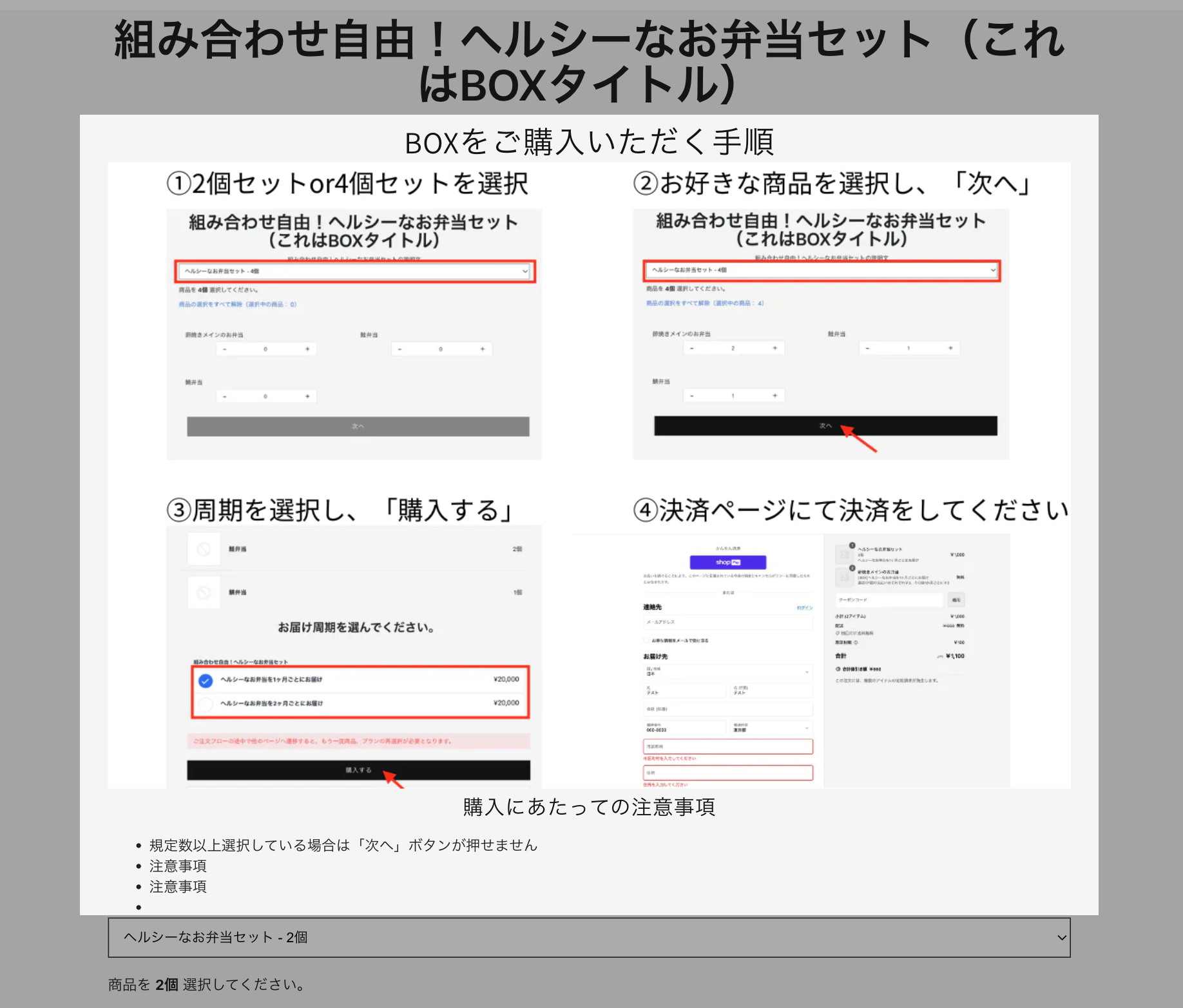 BOXの説明欄にはhtmlを書いていただくことが可能ですので、imageタグを使って購入の流れの画像を設置したり、注意点をlistタグを使って表示していただくと、お客様にとってわかりやすく、購入されやすくなります。ぜひお試しください!